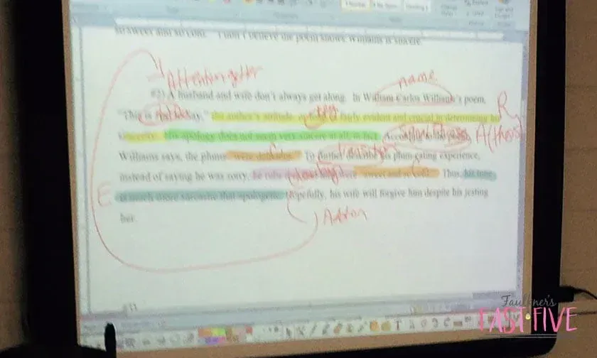 Choose a prompt from a text you’ve been reading in class, or if you are using my teaching pack, use the provided stimulus and prompt. Sometimes I’ll have students attempt the first sentence alone. Other times I’ll start it by modeling my thinking aloud. I’m always modeling aloud, come to think of it. (Or maybe that’s just talking to myself LOL)! Sometimes, I write the parts of the formula on slips of paper and randomly give them out to students, so they have to chime in when it’s their turn. It just depends on where my students are and where I need to meet them. Then we just spiral and go with the flow from there. It really does take a lot of patience and time to write a paragraph together in class. It also takes a lot of willingness to step back on my part and let students work through it. Many times, I am putting them on the spot, so they have to feel comfortable speaking out and making mistakes. I give them time and space to think. Then as we are working back through what we’ve written, I model revision, and we come to conclusions together about what worked and what didn’t. I take it one step further right then, too, and we brainstorm how to fix those mistakes and just improve what we’ve done.