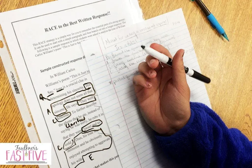 Lastly, I always give my students feedback on what they’ve written. My RACE teaching pack comes with a rubric, but you could even just do a check list. Sometimes I do that, too. Again, it just depends on what my students need. Occasionally, we will take one of our previous RACE paragraphs and revise it. That is a critical part of the learning process as well.