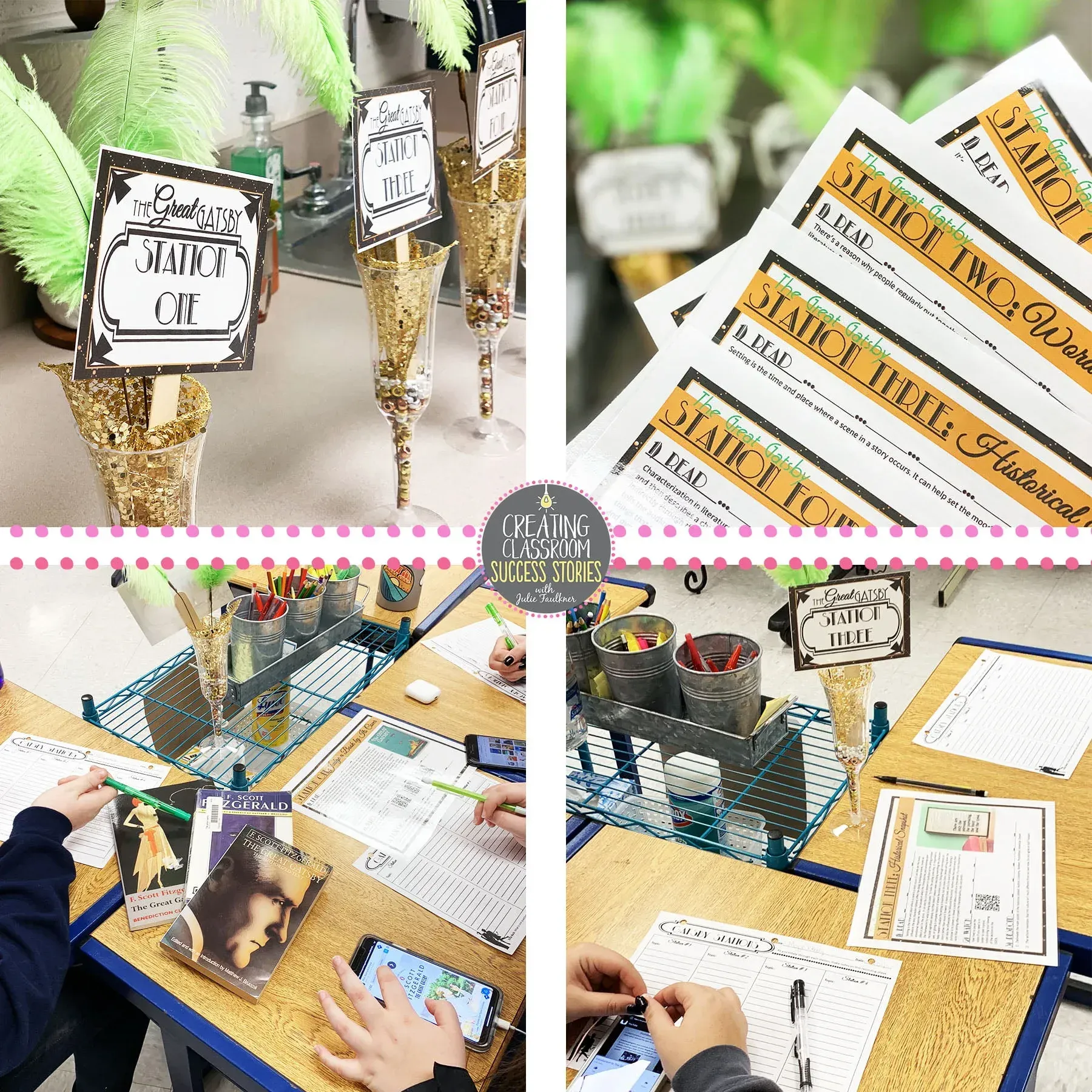 With that said, once you know what background/introductory material you really want students to have before they start reading, consider a few of these strategies to deliver that info. A lecture/ppt might be the best way to get some ELA vocabulary out to students. If I want to talk about the author, only if necessary, sometimes I’ll show a quick video or documentary. I like this choice if the author himself/herself is part of the video. Other times, there are instances where I need to cover several aspects of background before we start, and in that case, I love to do discovery stations. When I start The Great Gatsby, I want to do a short review of the time period, have them meet the characters, explore the book covers — because I think sparks their interest regarding plot and conflict — and a few other details. The discovery stations condense the info and organize it into bite-size chunks, so it’s not just days of note-taking. P.S. In the Gatsby novel intro stations, the only reason we talk about Fitzgerald is because it directly relates to the poem in the opening lines. 😉 Over on my Facebook page, I talk a little more about beginning a novel unit with author info. It’s a fine line what to include in the beginning of a literature unit, but it shouldn’t just be to check the box.