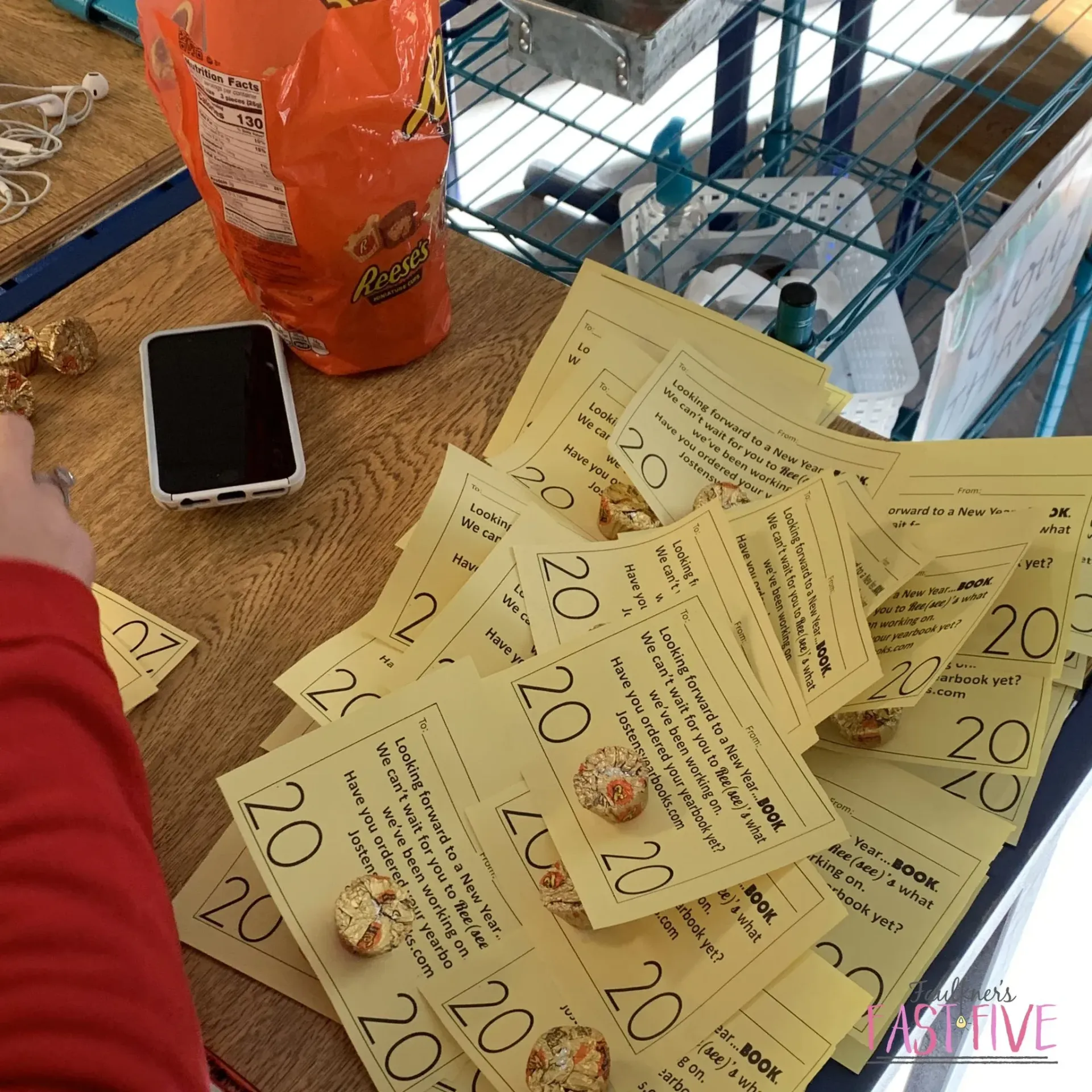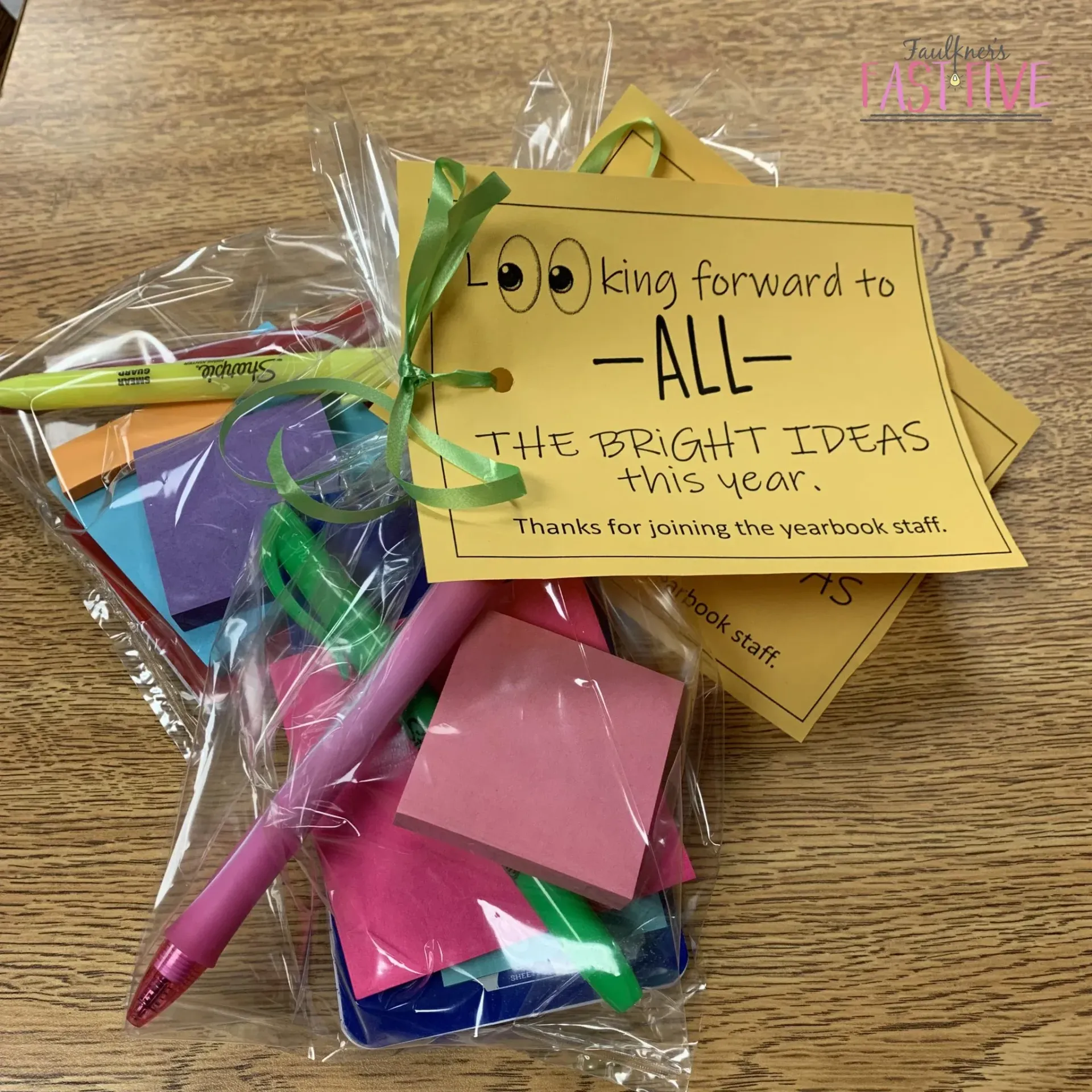 Yearbook advisers and veteran staffers know that taking yearbook class is no cakewalk. It is a 9-5 (to give a little Dolly shout out here) commitment. It is a huge responsibility to be on yearbook staff, and I believe my students deserve to know that I value them! Each year for back-to-school in yearbook class, we design a staff shirt that suits their personality and alludes to the theme of our book. We always put our “catchy saying,” book name, and year on the front. They love for the word STAFF to be written across the top on the back! So, I happily oblige them. I even order myself a shirt, too, and we wear them throughout the year. You can usually order custom t-shirts for around $10 each at a local shirt shop. Another thing I like to do for the staff is periodically bring them treats. Sometimes I include a message. Other times I just have chocolate and coffee handy. Jazz up your room with fun and motivational posters. Choose a few evergreen pieces, use student art/work, and have a spot to include trendy and/or seasonal signs/posers as well.