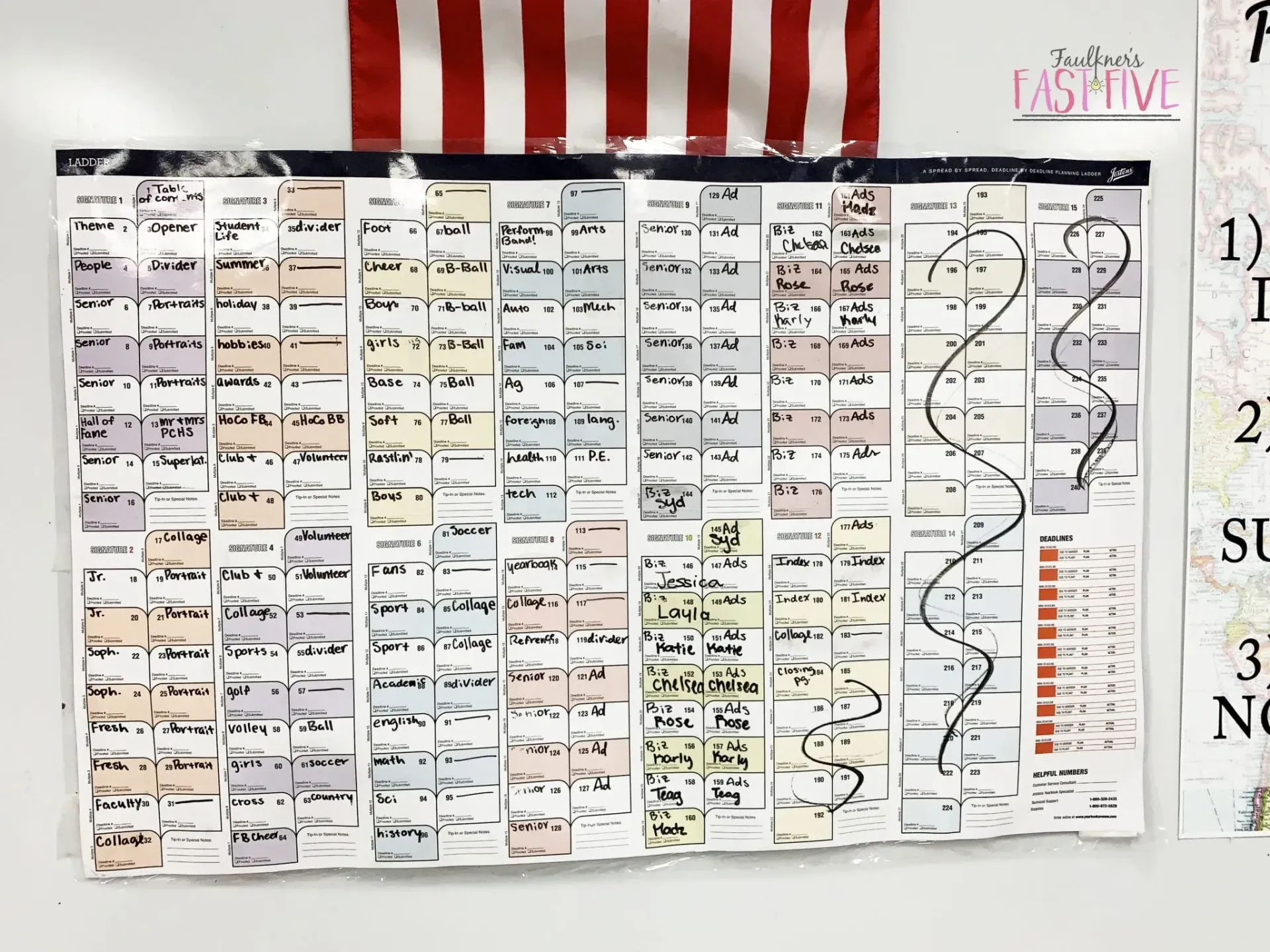 - Be sure to keep a printed copy and an electronic copy up-to-date of the ladder! It is tragic if something happens to the ladder! Read more about planning your yearbook ladder at this post: Everything you need to know about planning your yearbook ladder.