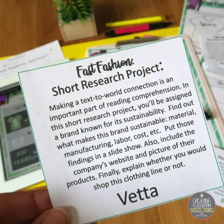 - Research – Many nonfiction texts or informational text articles you might find lend themselves really well for further investigation. If you don’t have time to conduct research in class, consider using the research tasks included with my Hot Topics Lessons with your advanced learners for differentiation.