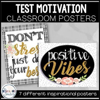The Scholar Source created a set of seven test motivation posters in a black and white with glitter gold theme that you can just print and go, and they are super cute.