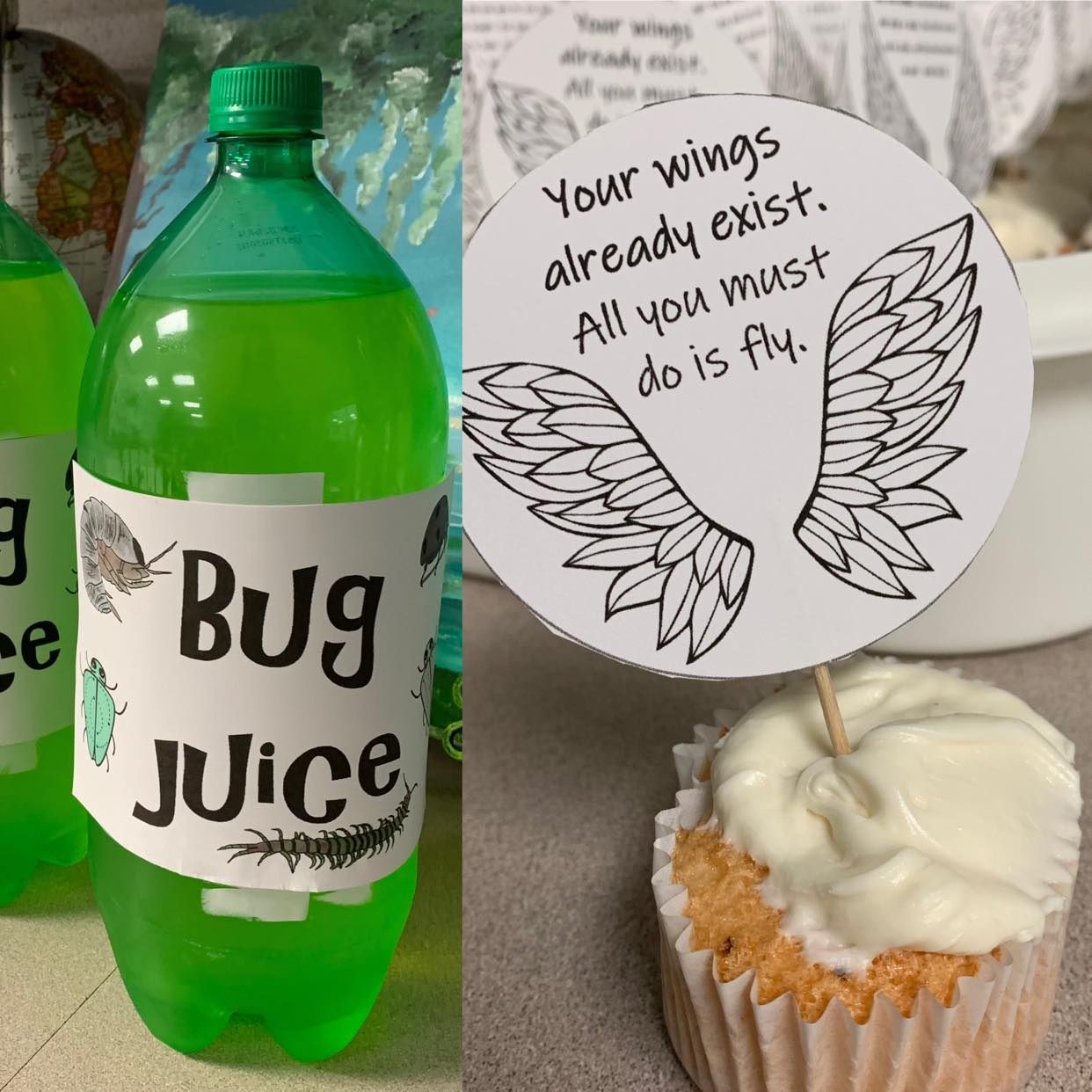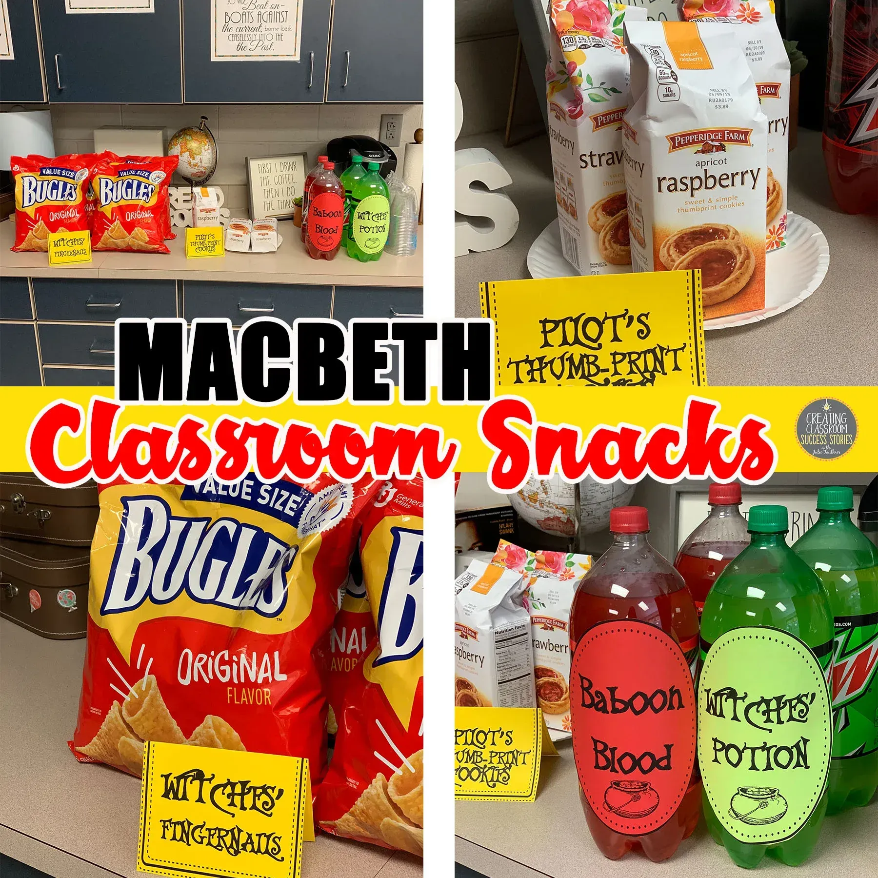 The title of this section might be a little misleading because I wouldn’t suggest bringing food with no purpose! What I mean here is using food to relate what you are doing but rather than it being directly mentioned in the text, it is connected another way or serves as a celebration. For example, after having read the first two acts of The Crucible, we usually watch the movie up to that point. I like to have a little snack for them, so I do something “punny” from the text: I serve “chicken blood” (red juice) and “beans and lintels” (bean dip). That calls attention to some of the conflict in the story and is fun! See more about how I teach The Crucible here. I’ve done a similar menu for Macbeth, “A Man with Enormous Wings,” and The Metamorphosis.