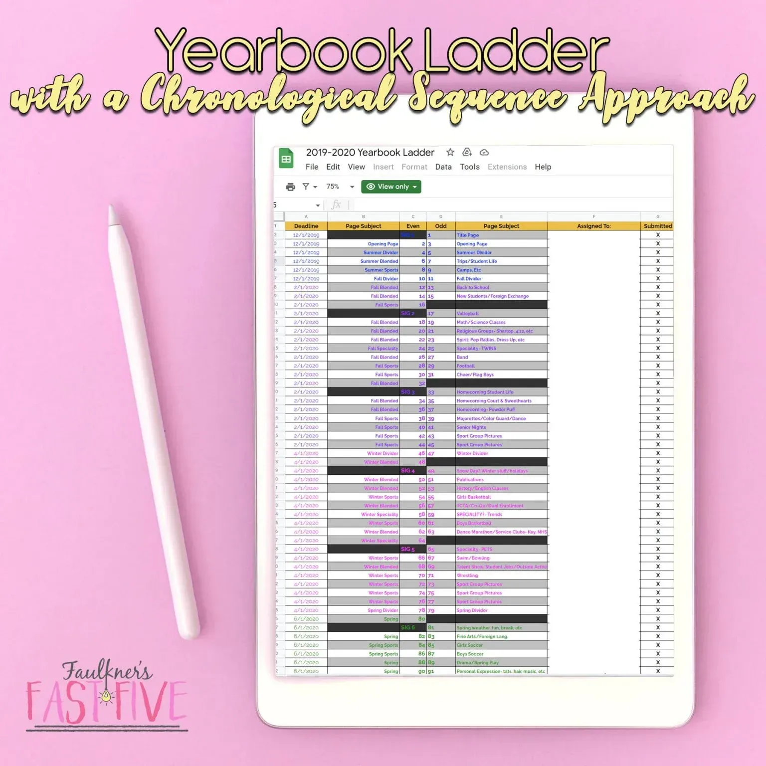 When it comes to creating a yearbook, one of the most important steps in planning is the sequence in which the content will appear, and in the yearbook world, we call that the yearbook ladder. The ladder is the page-by-page list of what will be appearing where in your yearbook. Without a ladder to plan your yearbook pages up front, it is likely that areas of content could be missed, pages would be left unplanned/blank, or your book won’t feel cohesive when it’s all said and done. However, the process of deciding how to tell the story of the year can be challenging because there are several things to decide and account for when planning a yearbook ladder. Here I’m sharing everything you need to know about planning a yearbook ladder so that process can go from challenging to rewarding in a few steps.