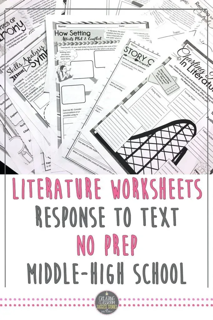 My literature worksheets that come digital and printable in the pack are also a good way to focus small-group discussion if there’s something specific you want to students to note or focus on for a certain set of pages or chapter. These would also work really well for the out-of-class packets you could assign students, especially if you are building your own book clubs or your unit needs more meat. (More on the packets below.)