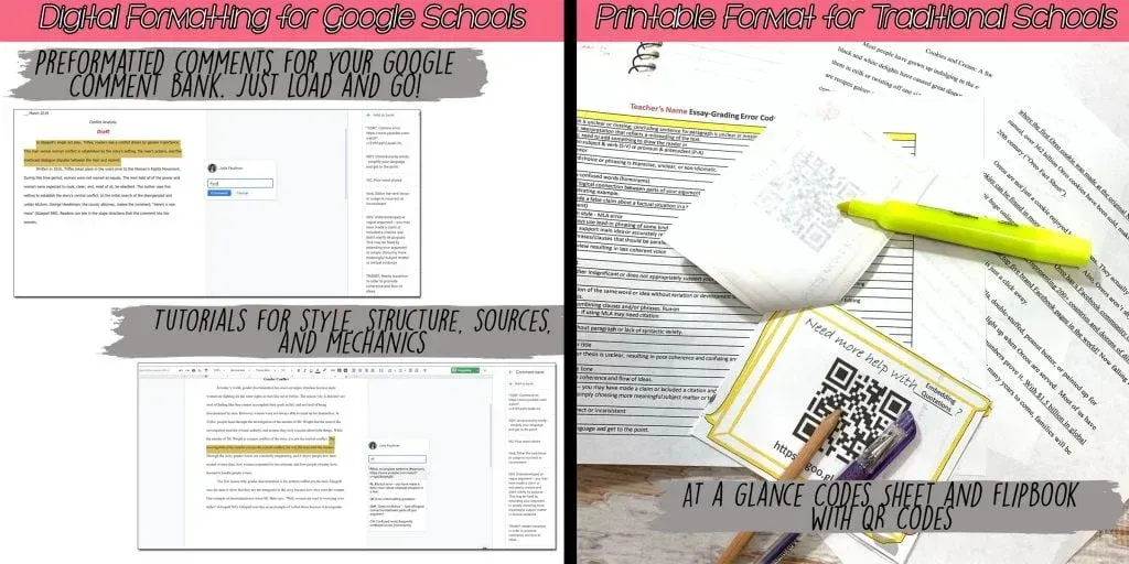- Next, I made a codes sheet to make marking quick and easy for the same mistakes or remarks over and over. I have a quick and easy codes sheet that I use for printed essays, but I just created a codes sheet that I loaded into my Google Comment Bank. I added video tutorials so students can click over and receive more thorough and customized instruction. Get those digital and printable fast and focused feedback materials here!