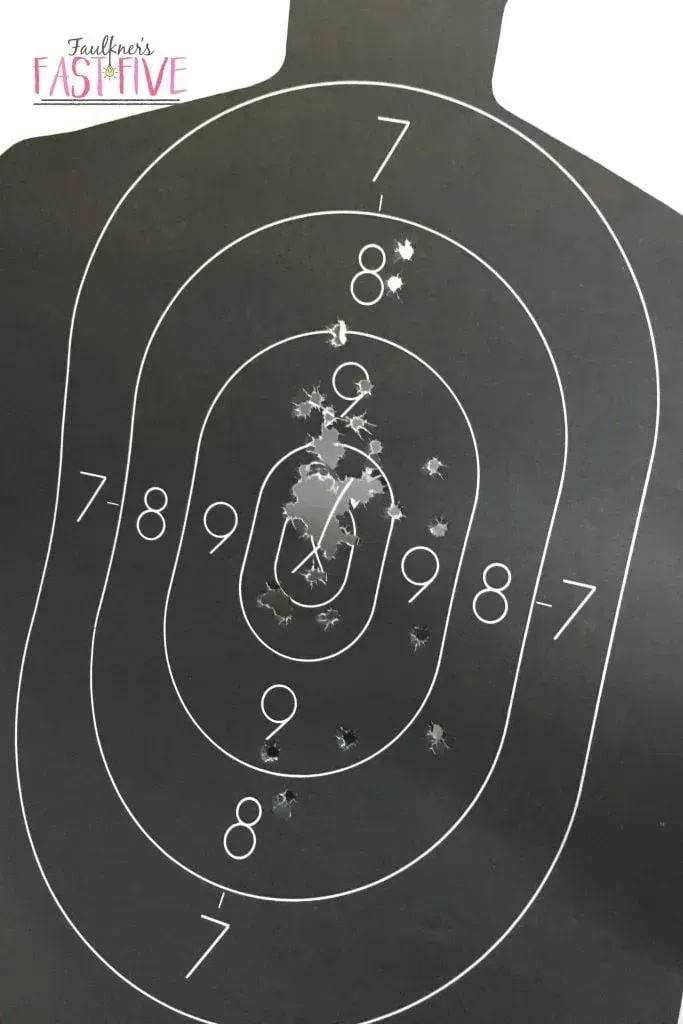 Prior to the class, my husband prepped me at home with the firearm. We practiced what I needed to know for the performance part of the test because that was the hardest part. He set up a target in the backyard and gave me a quick tutorial on what I needed to know about loading the gun and shooting at the target. The whole time we were shooting the wind was blowing, and the teeny, tiny target he set on the ground fifteen yards away kept moving. Honestly, it wasn’t doing much for my confidence level. He assured me I would be fine, and we wrapped up the practice session. It wouldn’t be until the performance piece of the test that I would realize the value of the level of “hardness” of that practice session. The instructors of the class also provided a run-through of the performance segment of the test, too, and in that exercise, we learned that we would be shooting a target much closer than what my husband and I had practiced at home, which was actually good news. And when we got to the range, we saw the targets were posted high and steadily on a board.