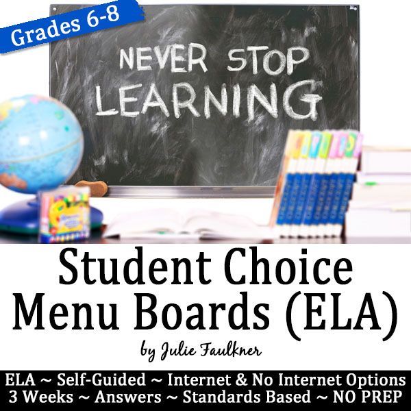Menu boards are an excellent way to give students a choice. I incorporate options in most all of my resources, especially the novel guides. If you have fast-finishers, menu boards are excellent way to differentiate. I have several free options listed here.